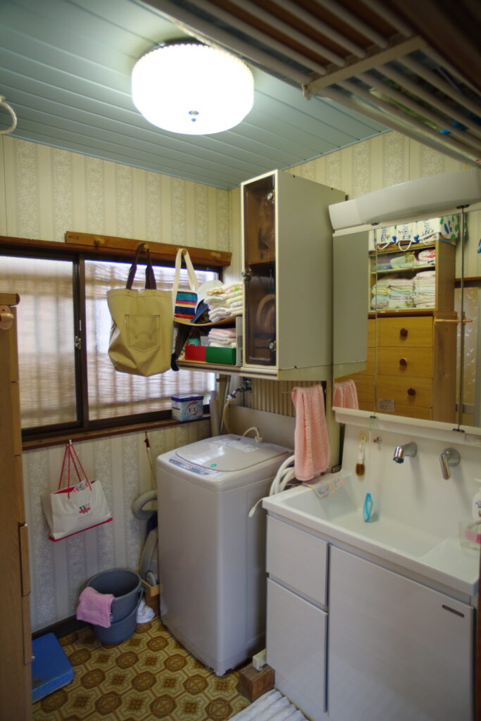 古くなった壁と天井のクロスを刷新。床とクッションフロアも張り明え、洗面所全体が明るくなりました。愛着のある洗面台はそのまま使い、リフォームしました。