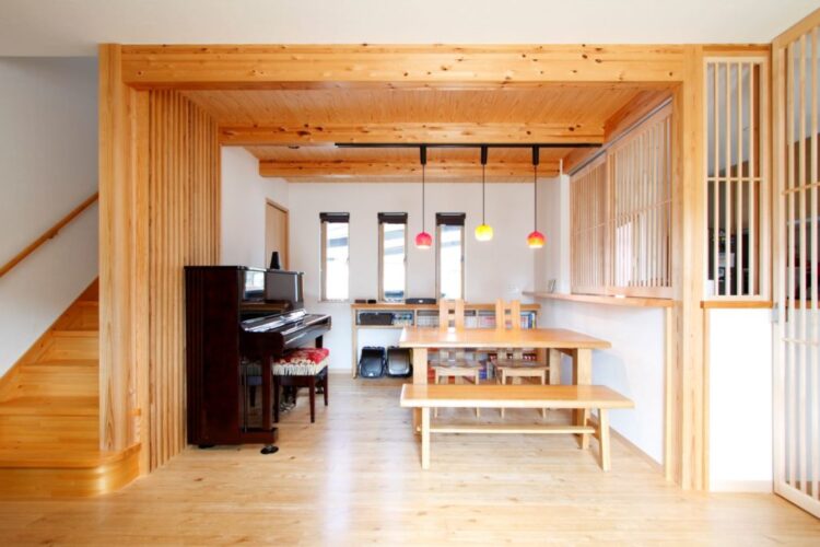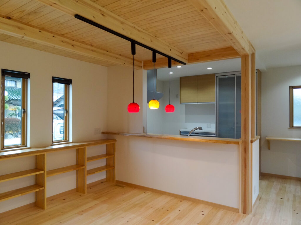 施工内容 | キッチン入口格子ドア設置、キッチンカウンター上に格子の窓を設置 |