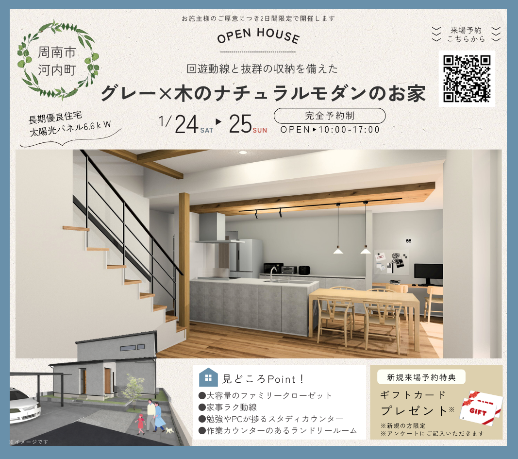 1/24㊏25㊐周南市河内町にて完成見学会を開催します<予約制>